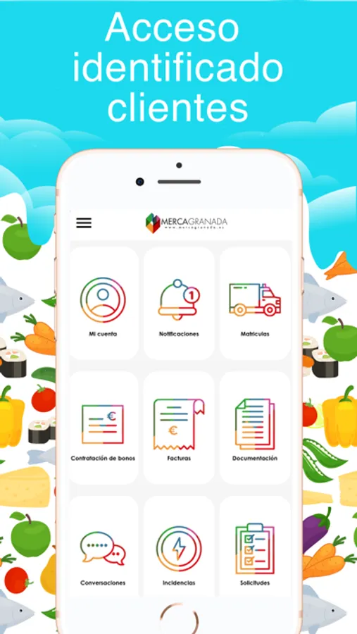 Para los clientes (operadores y detallistas), accionistas y personal de Mercagranada, la aplicación cuenta con un acceso identificado, mediante el cual podrán acceder a su documentación y realizar gestiones 24 horas los 365 días del año, entre ellas: dar de alta y baja matrículas de acceso, consultar las facturas, recibir avisos, comunicar incidencias, realizar solicitudes, contratar bonos de acceso, etc.
