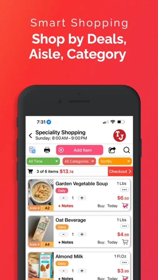 - Aisle Number: Add Aisle number for the item and organize the items by Aisle number for easy shopping.