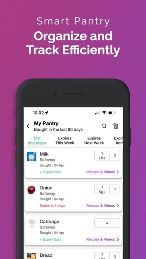 - Recipe Recommendations: Get popular recipe ideas for expiring items in your pantry.