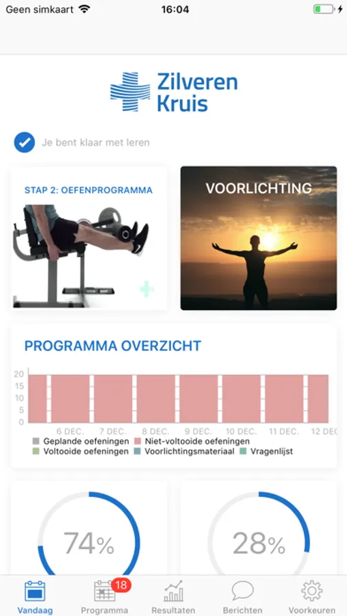 Krijg ondersteuning bij de uitvoering van uw oefeningen, lees het voorlichtingsmateriaal en vul vragenlijsten in dankzij notificaties binnen de app.