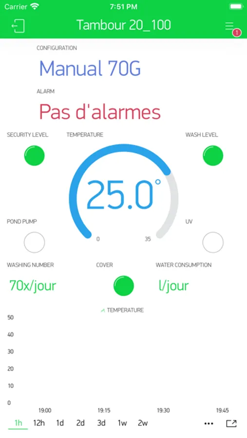 This application also manages alarms. During an alarm an email and a notification will be sent.