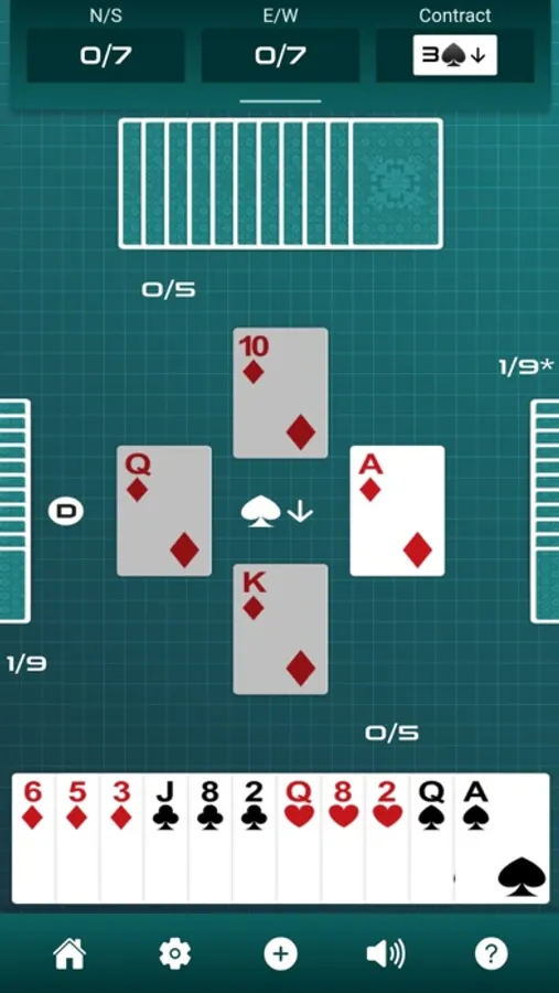Bid Whist is a little more complex to learn, but rewarding as you improve your strategy over time to defeat your opponents. Uptown, downtown and 'no trump' bid types keep the landscape different every session. Choose between easy, medium and hard mode and make sure to track your all time and session stats to follow your improvement as you learn!