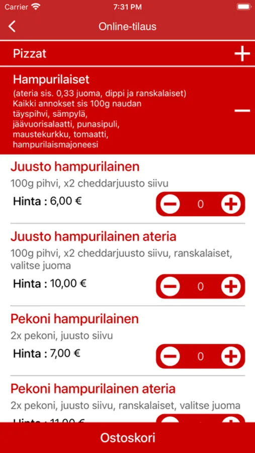Tilaa pizzat ja kebabit noutona tai kotiinkuljetettuna. Tarjontaamme kuuluvat PIZZAT, KEBABIT, Hampurilaiset, Grillituoteet, Lounastarjous, Lihapiirakat, Hot wings, Salaatit ja JUOMAT.