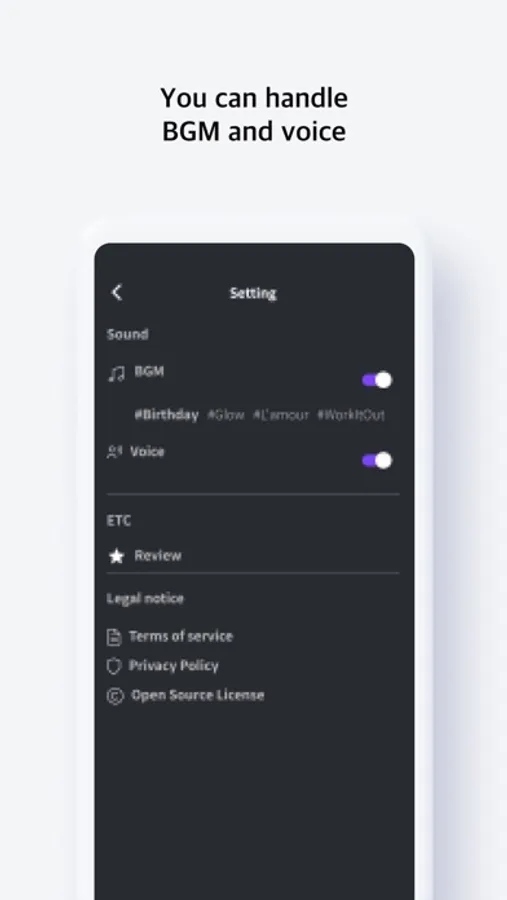 There are 4 types of voices and background music.