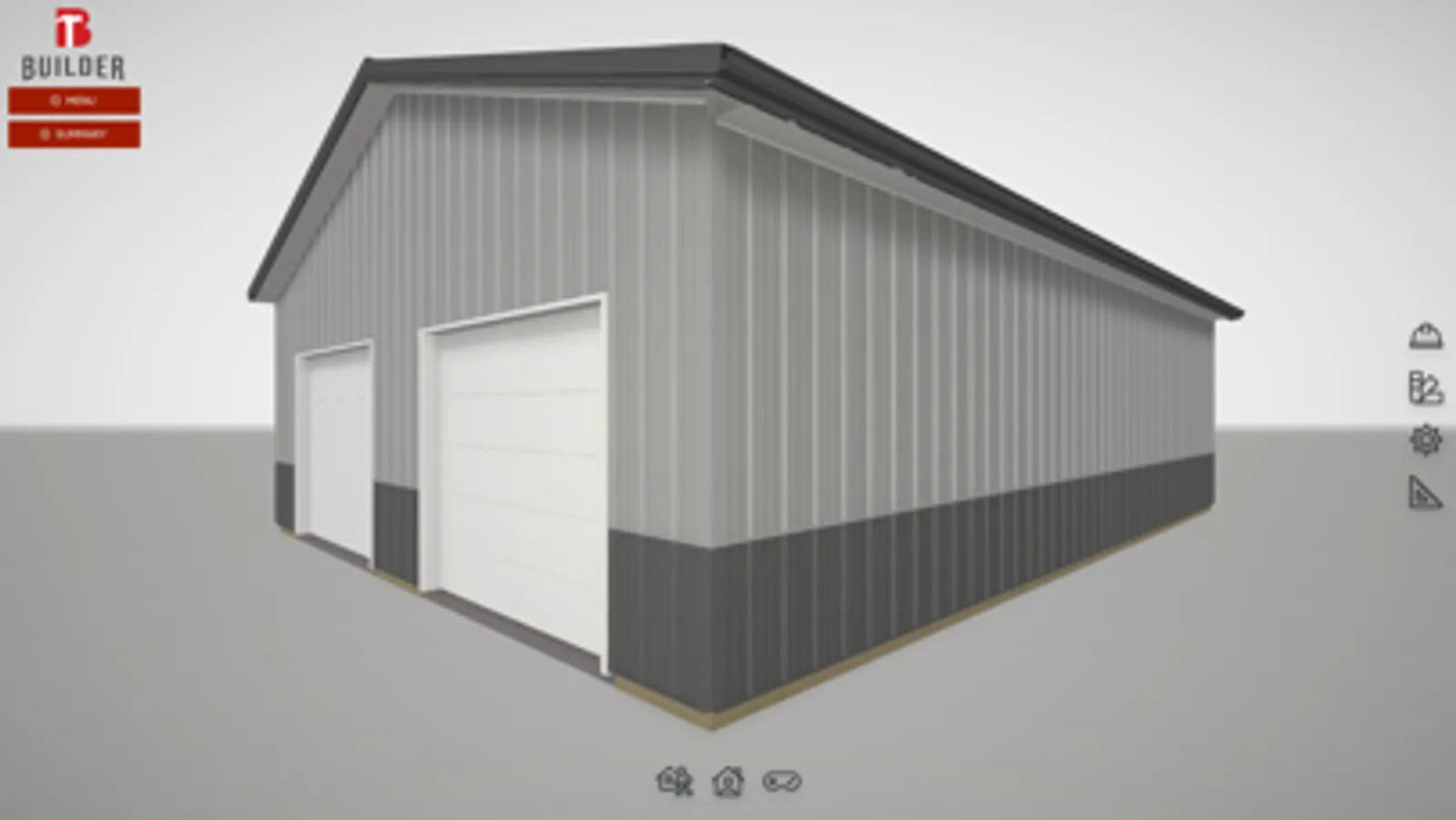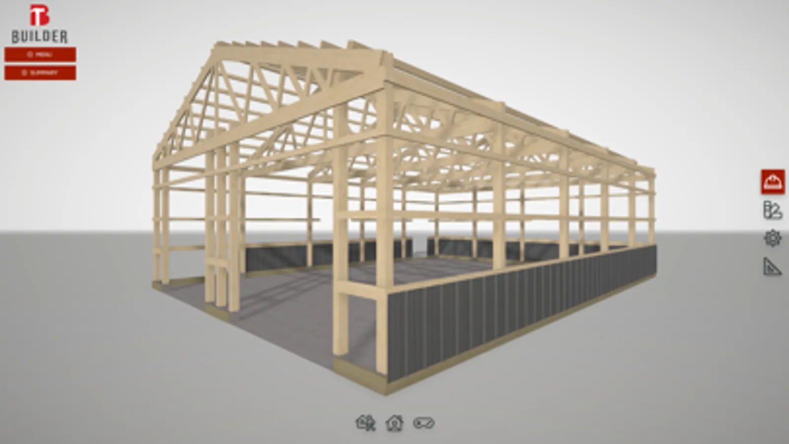 View and customize post-frame buildings from an existing catalog of popular designs. Apply new building colors and view construction features.