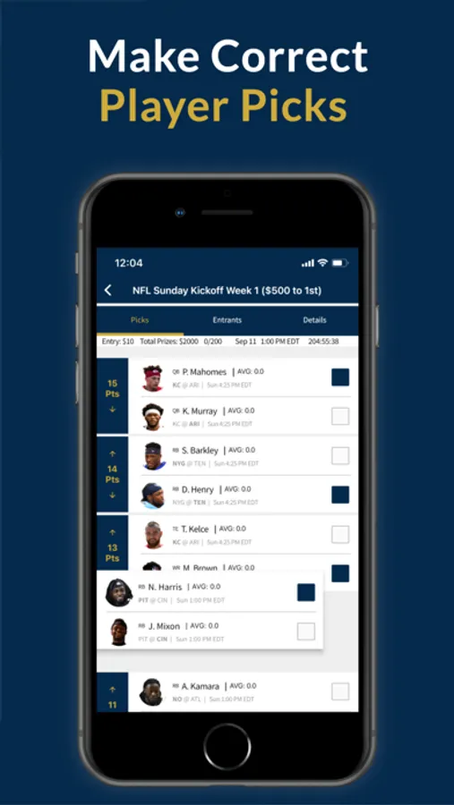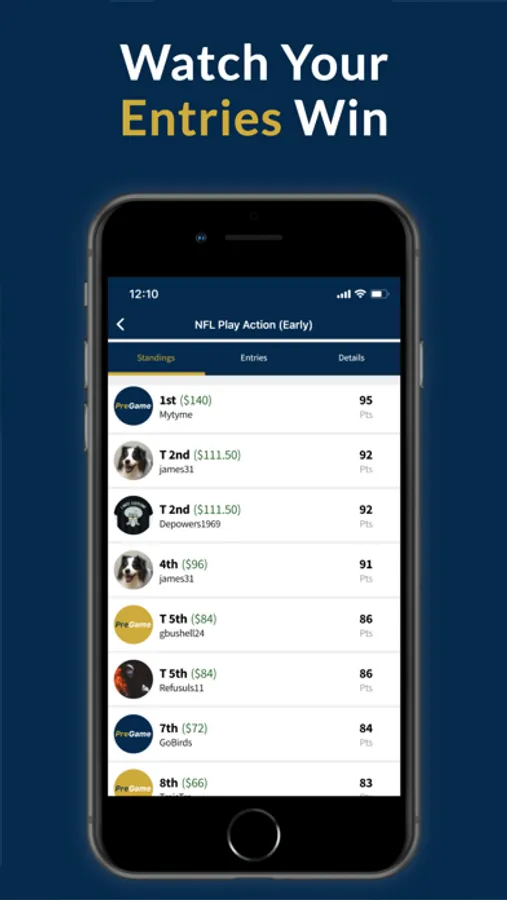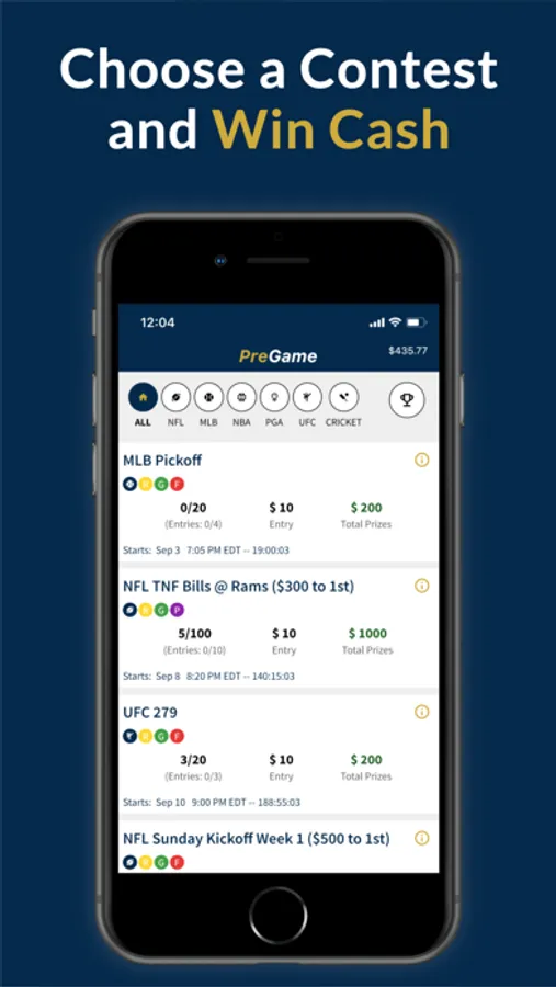 PreGame offers simple daily fantasy sports contests for the NFL, NBA, and MLB where users make picks between 1 on 1 player matchups based on who they think will accumulate more fantasy points, and then rank those picks in order of confidence. Points are accumulated from each confidence level of a correct pick. Entries with the most points in the contest win cash prizes.