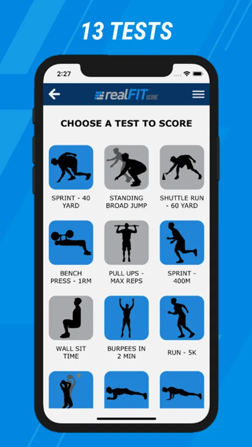 Use your score to assess your current fitness level, measure progress, set goals or challenge your friends. This information is worthwhile for anyone who wants to be fit. The tests are easy to do, and the scoring is free and instant.
