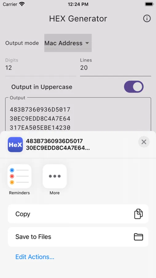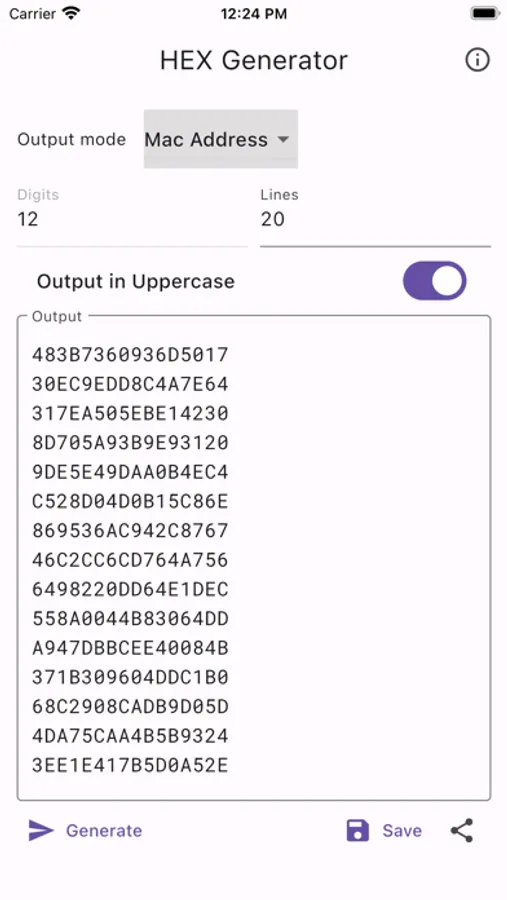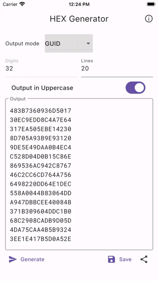Simple HEX string generator with ability to generate HEX string in Custom as well as in GUID and Mac Address formats.
