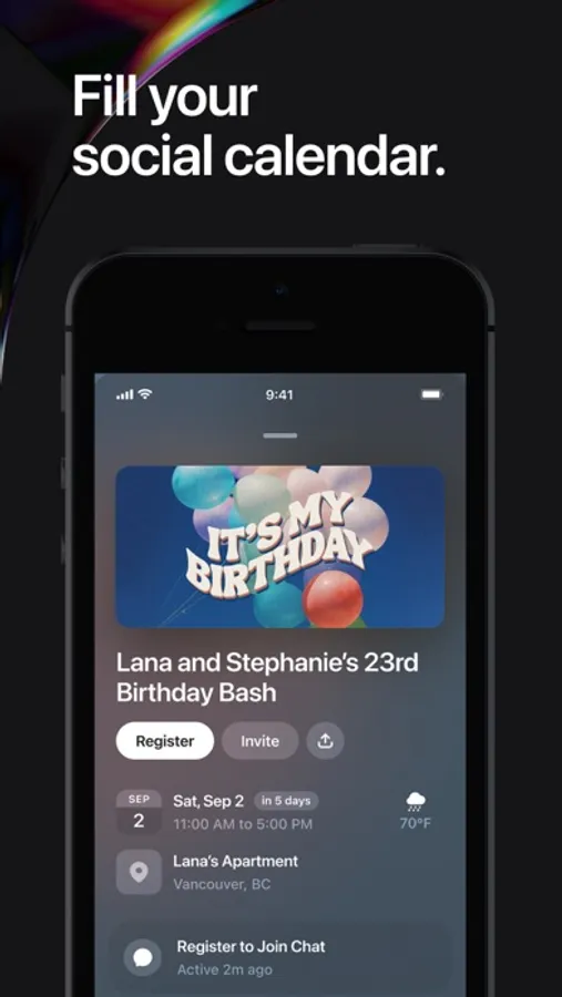 You can create a beautiful event page in just a few seconds. Just choose a cover image, name, location and time for your event. We’ll take care of the rest.