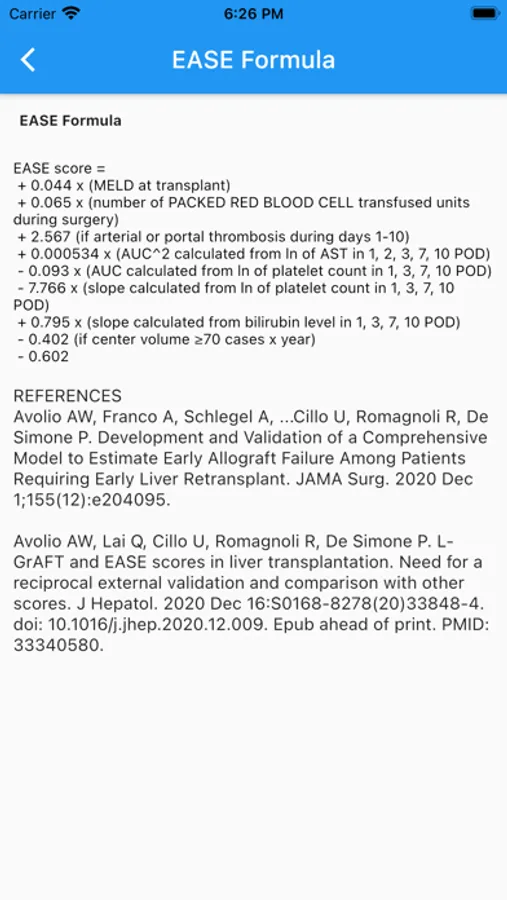 The EASE Calculator estimates the risk of Early Allograft Failure at 90 days after liver transplantation.