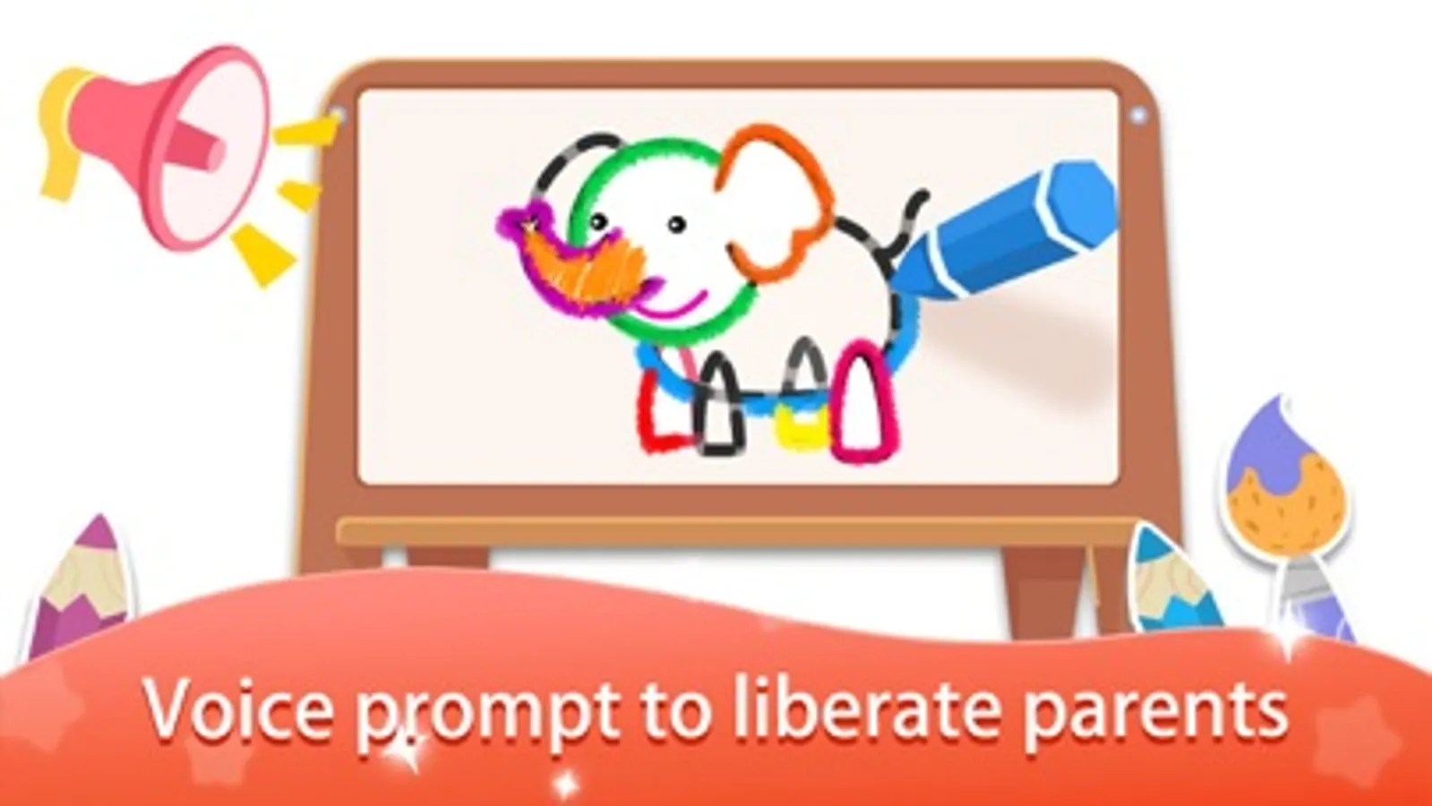 Children will follow the voice prompts to draw cute cartoon images step by step, such as cows, monkeys, airplanes or butterflies. Simple line drawing can quickly improve children's hands-on ability. After the painting, each character will move to play games with you!