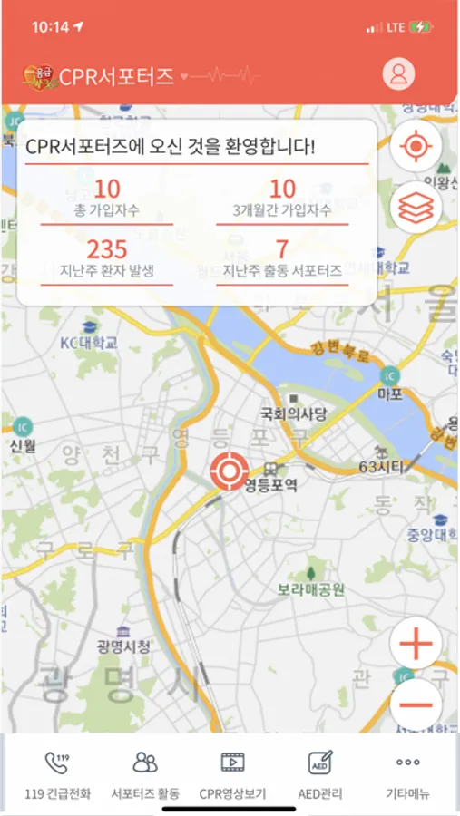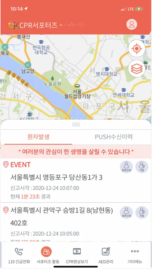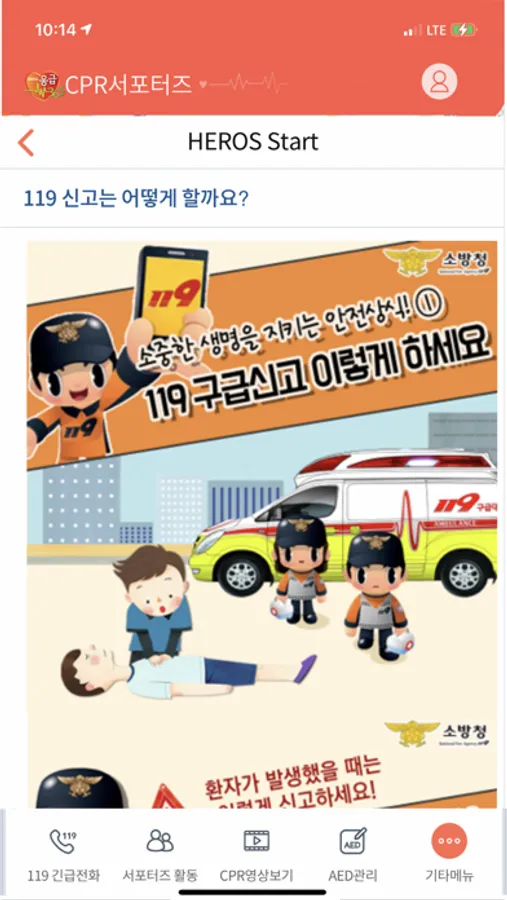 심정지 환자가 발생했을 때 구급대가 출동하기 전 인근의 서포터즈가 심폐소생술을 사용할 수 있도록 지원합니다.