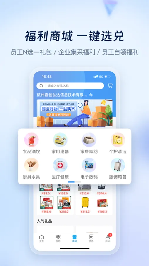 6、员工福利:企业在线选择分配礼包,员工线上自领;
