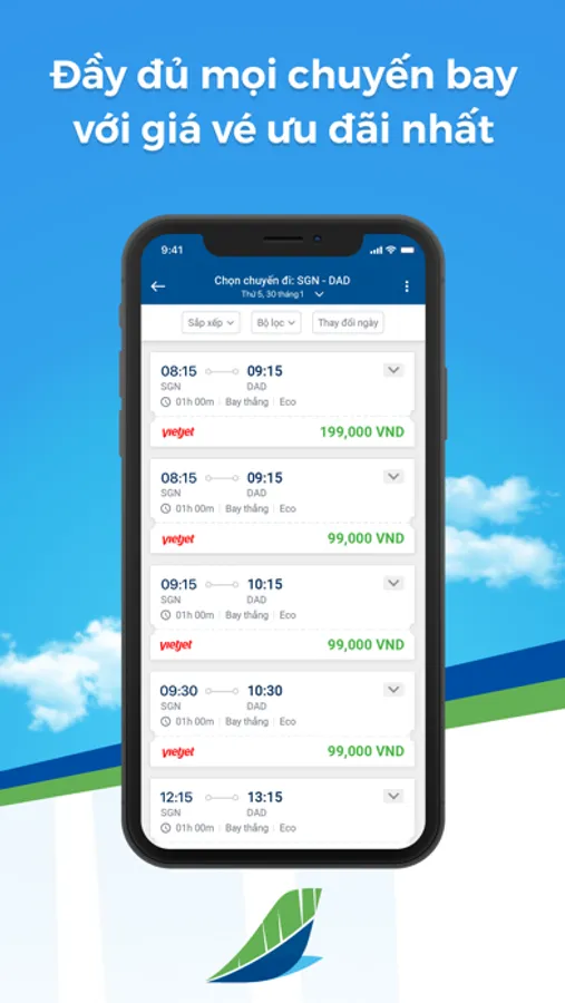 Ứng dụng đặt vé máy bay sẽ hỗ trợ quý khách đặt vé máy bay giá rẻ chỉ trong vòng 90s. Chỉ với vài thao tác đơn giản và hình thức thanh toán linh hoạt, quý khách đã có thể sở hữu ngay một tấm vé máy bay giá siêu tiết kiệm.
