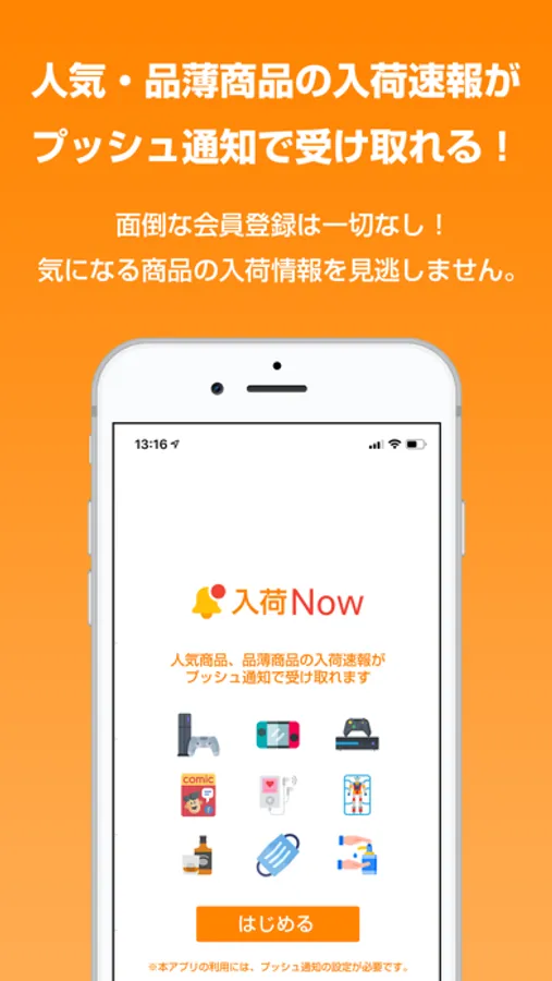 面倒な会員登録は一切不要です。インストールして、自分の欲しい商品や購入したいネットショップを選ぶだけで販売開始のプッシュ通知が受け取れます。