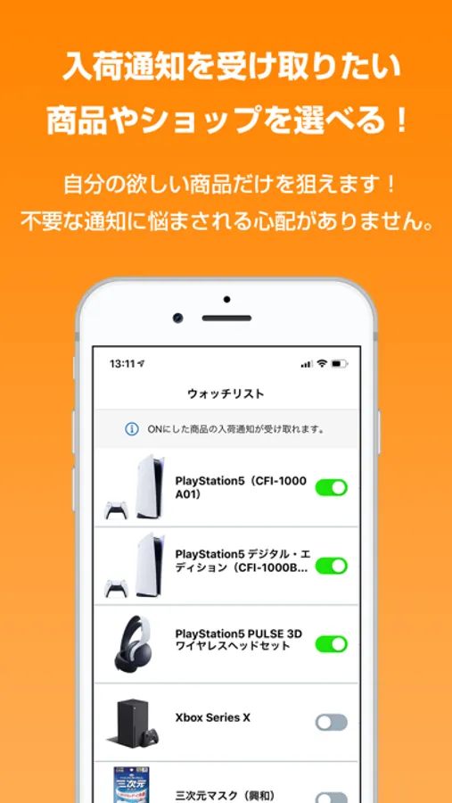 通知を受け取りたい商品やネットショップを選べるので、興味のない商品や不要な商品の通知に悩まされる心配がありません。あなたが欲しい商品だけを狙って通知が受け取れます。