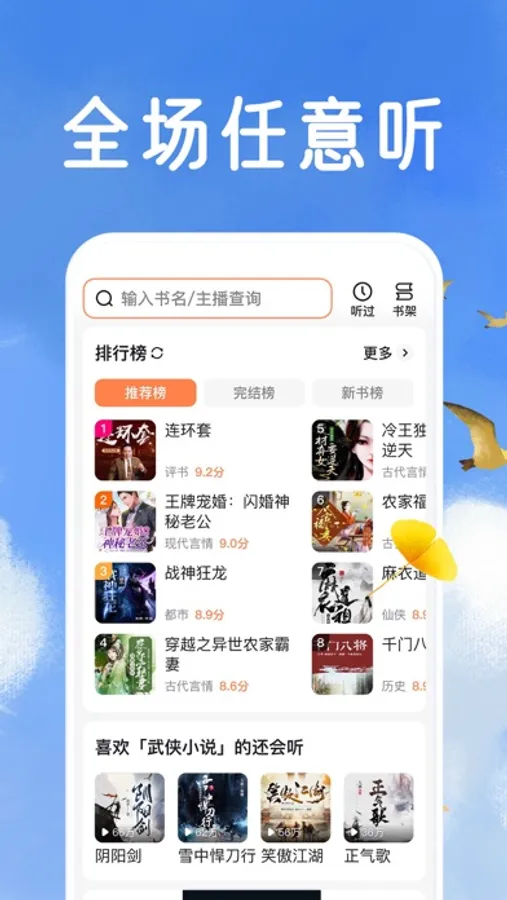 【海量小说】正版小说资源多,畅读畅听都满足,热门榜单分类全,精彩故事不间断。