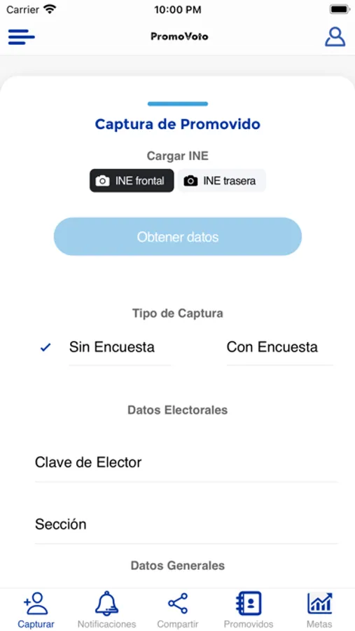 Aplicacion de PromoVotos. Aplicacion que sirve para capturar personas afines al candidato que se esta promocionando.