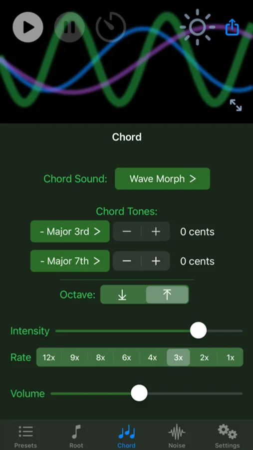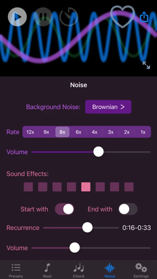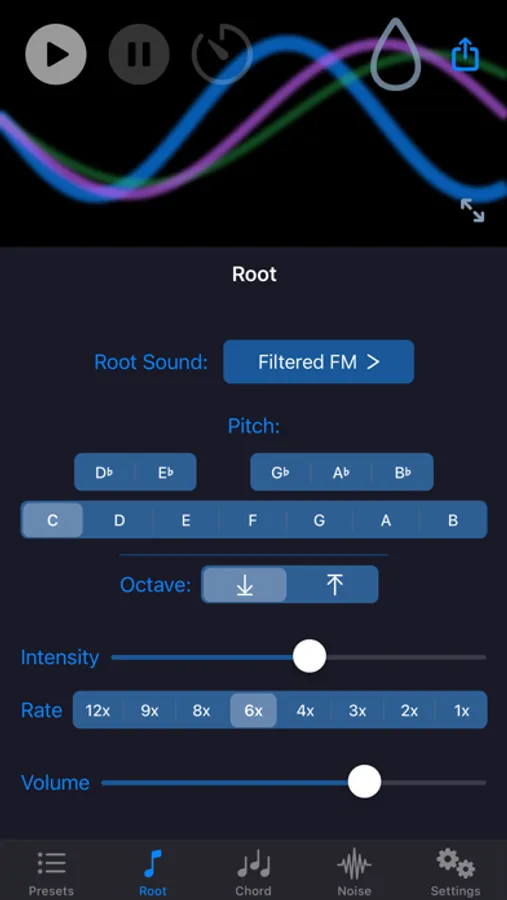 Control three continuous audio sources running in parallel, each with its own rate of shifting intensity. Expand the soundscape with unusual sound effects crafted specifically for DroneLab.