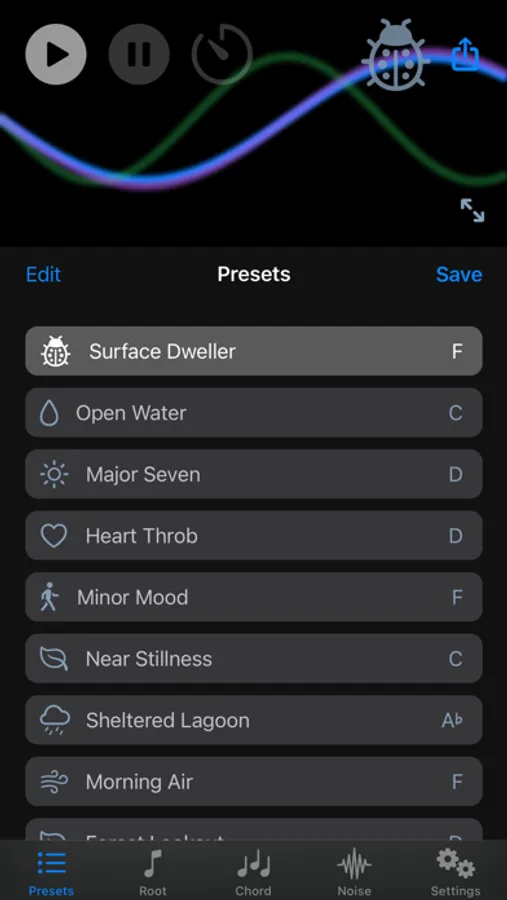 Get going quickly by selecting one of the included presets. Go further by selecting and customizing the sound sources, and save your own presets to the list.