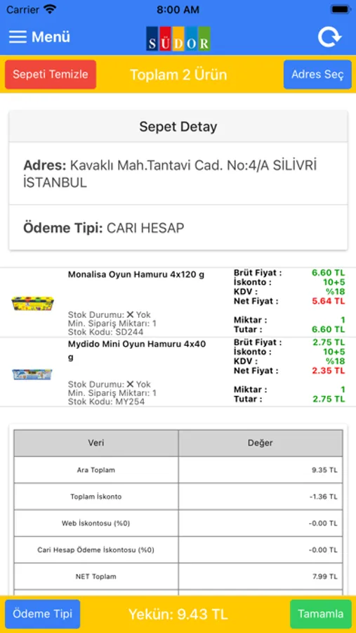 Südor B2B Sisteminin Web Adresi: http://b2b.sudor.com.tr