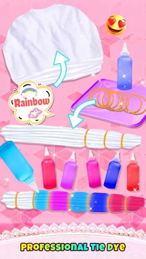Love to play tie dye games with rainbow colors? How many ways do you know to tie dye? The answer is in “Tie Dye Pro”