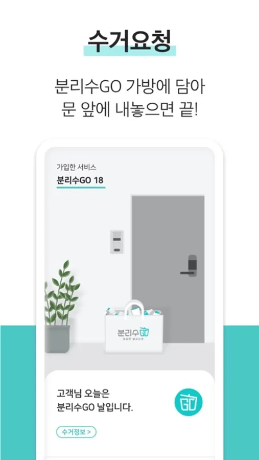 분리 수 GO Bag에 넣고 현관문 앞에 내놓으면 끝