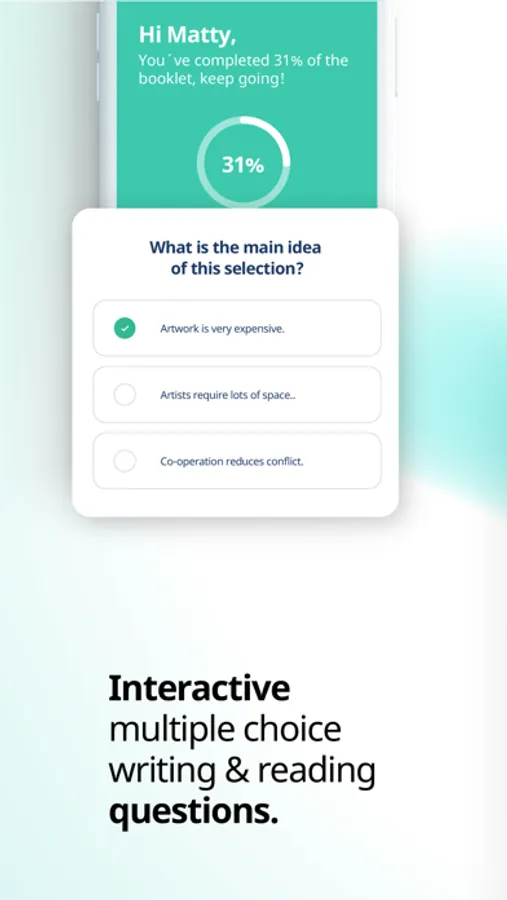 Track your progress with our built-in marking system. You can also utilize our in-app feedback feature to your advantage by submitting your work to our English teachers.
