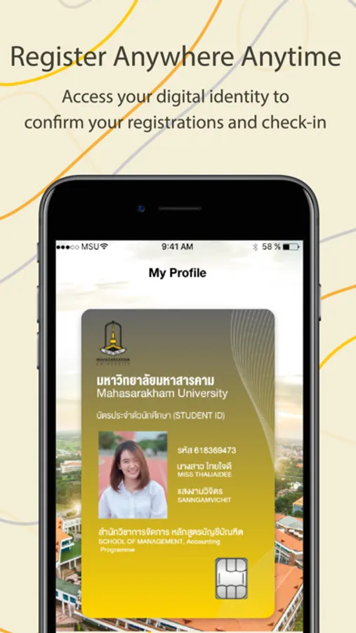 - Personal QR code virtually representing you as student of Mahasarakham University