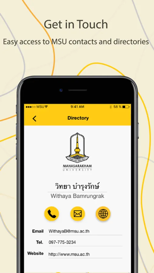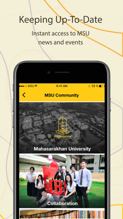 The application allows you to connect with the university anywhere anytime enabling you to stay up-to-date on any Mahasarakham University news and events and instantly allows you to access any required Mahasarakham University services on-the-go.