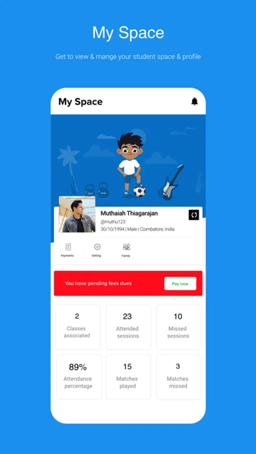 Students can update instructors/coaches on their leaves by sending instant leave requests and receive notification alerts on leave approvals & payments. Both students and parents can track attendance records and view both past & active class sessions. Students can also edit user & guardian details. Follow up on exciting updates & events of your facility on the Stories section.