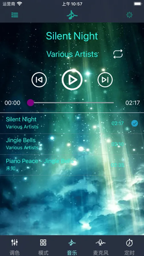 4、通过手机麦克风,监听手机周围的音乐声音,根据音乐律动,闪烁灯光。