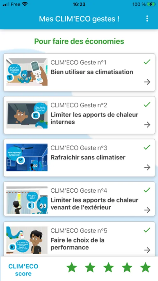 Cette application permet de recevoir des notifications pour que les CLIM’ECO gestes deviennent des habitudes. En appliquant ces éco gestes, l’utilisateur réalise des économies d’énergie et contribue à la limitation des émissions de CO2.