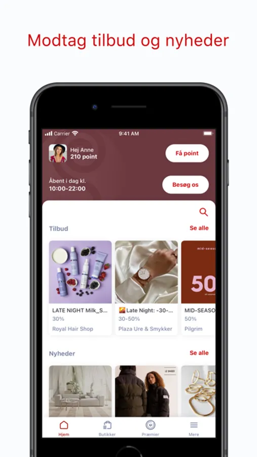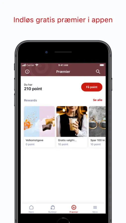 • Optjen point, når du besøger os, og indløs dem til gratis præmier.