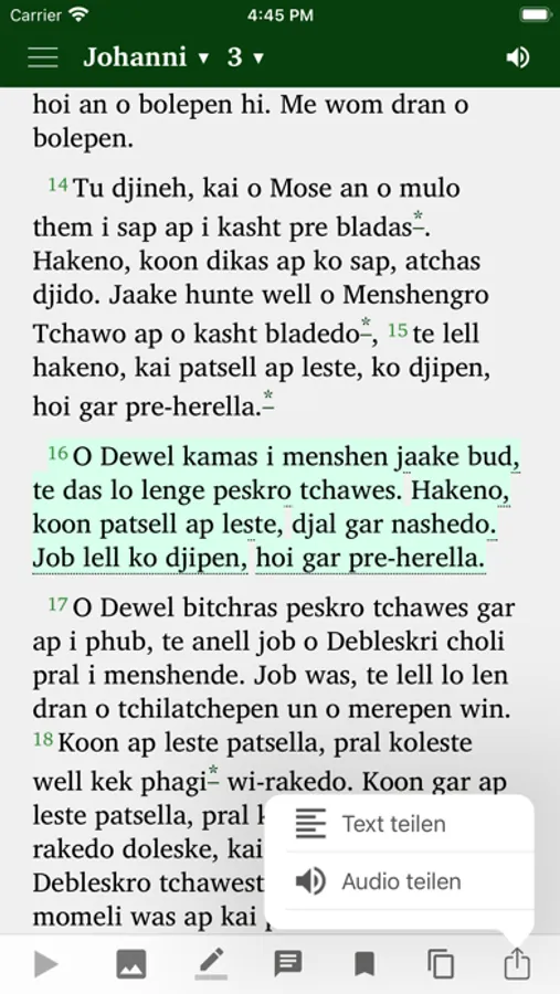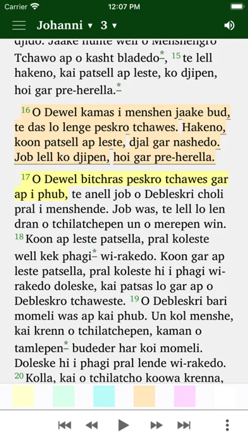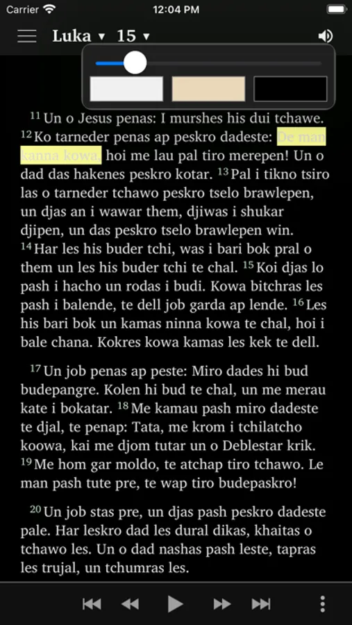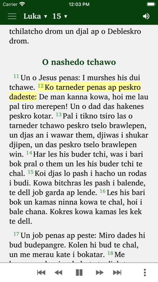 Sie können die Evangelien aus der Romanes-Bibel lesen und gleichzeitig von einem Muttersprachler gelesen hören.