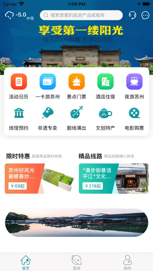 “君到苏州”有着丰富的文旅产品资源库,我们在原有文旅服务的基础上添加了新的功能亮点:公共服务、电影购票、剧场演出、双码一检、图游苏州,为用户带来新的体验提升,更好的服务广大苏州市民和游客。