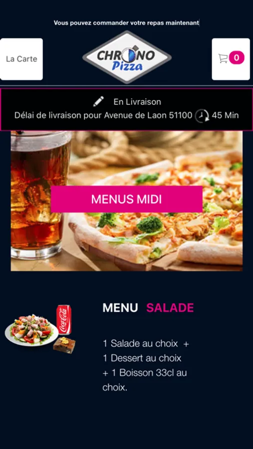 L'application Chrono Pizza vous permet de commander en ligne ou par téléphone via votre application. Vous pouvez consulter notre carte et choisir vos produits.