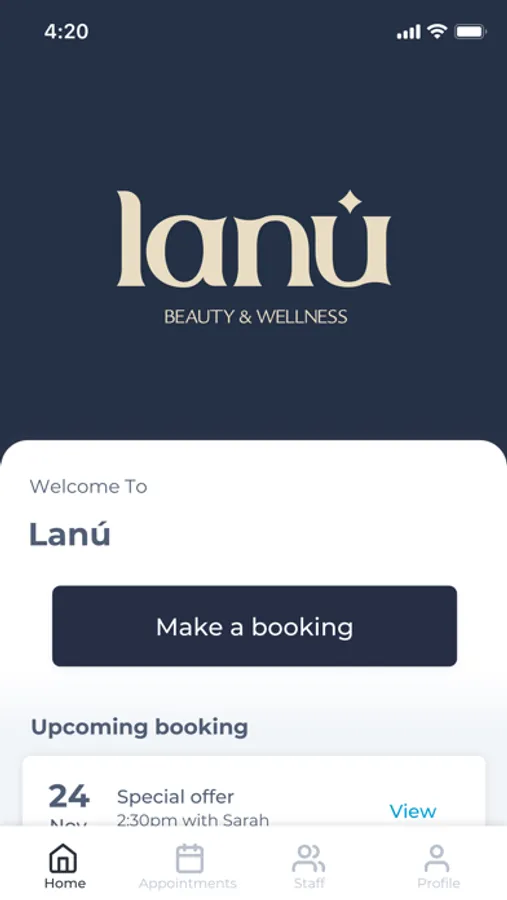 The Lanú app makes booking your appointments and managing your loyalty points even easier. You're just a few taps away from feeling good and looking great!