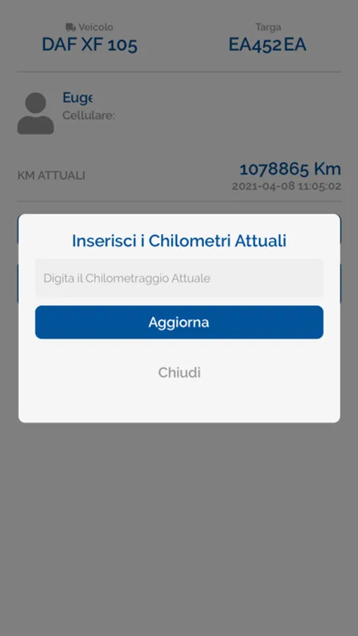 Gli autisti ricevono periodicamente una notifica la quale gli ricorda di registrare i chilometri attuali del proprio veicolo.