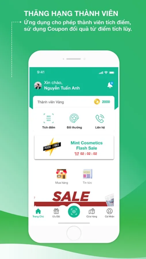 Thăng hạng thành viên, tích lũy điểm thưởng và quy đổi điểm để nhận những ưu đãi đặc biệt từ chuỗi Mint Cosmetic như giảm giá sản phẩm, dịch vụ, nhận quà tại cửa hàng.