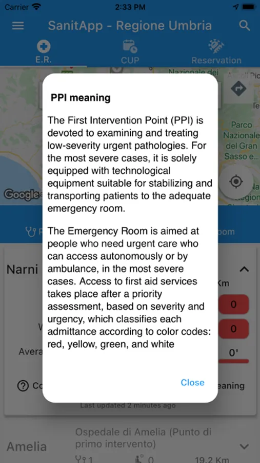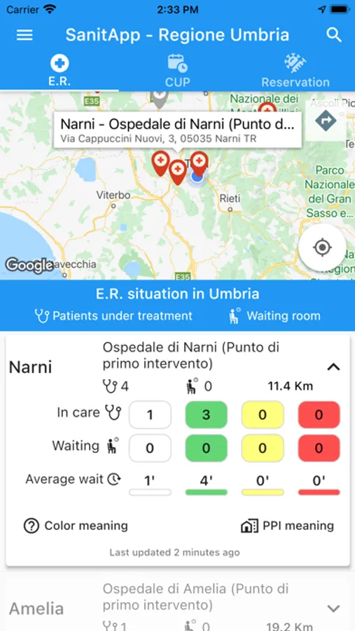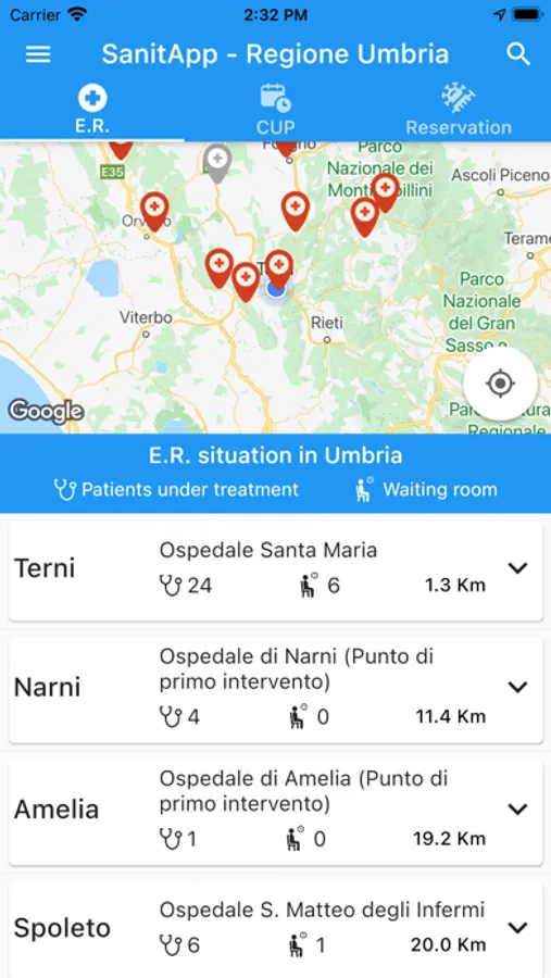 MAP of all first aid facilities in the Umbria Region with the possibility of connecting to google maps to get directions to get there.
