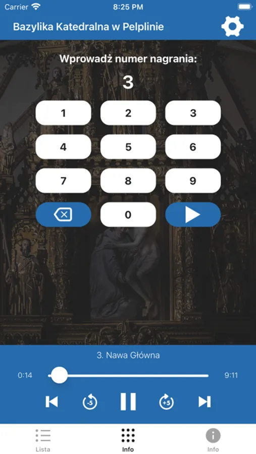 Aplikacja jest formą audioprzewodnika pozwalającego na zwiedzanie Bazyliki Katedralnej w Pelplinie za pomocą urządzeń mobilnych.