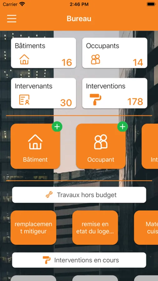 Grembat et une application web pour la gestion des grosses réparation entretien et maintenance des bâtiments, En tant que gestionnaire de parc immobilier public ou privé, syndic de copropriétés, chargés d'affaires immobilières, Chargés d'opération en bâtiment ou conducteur de travaux et chef de chantier, suivez et gérez en toute transparence tous vos chantier de grosses réparations d'entretien et de maintenance de bâtiment ou que vous soyez dans le monde. Vous pouvez également avoir l'ensemble des données qui fonts la vie de votre patrimoine immobilier. Rapport de vérification périodiques Suivi des travaux Plans du bâtiment disponible où que vous soyez… Plus besoin de se déplacer avec des chemises volumineuse et lourdes. Tout tiens dans votre ordinateur, votre tablette ou votre téléphone intelligent.
