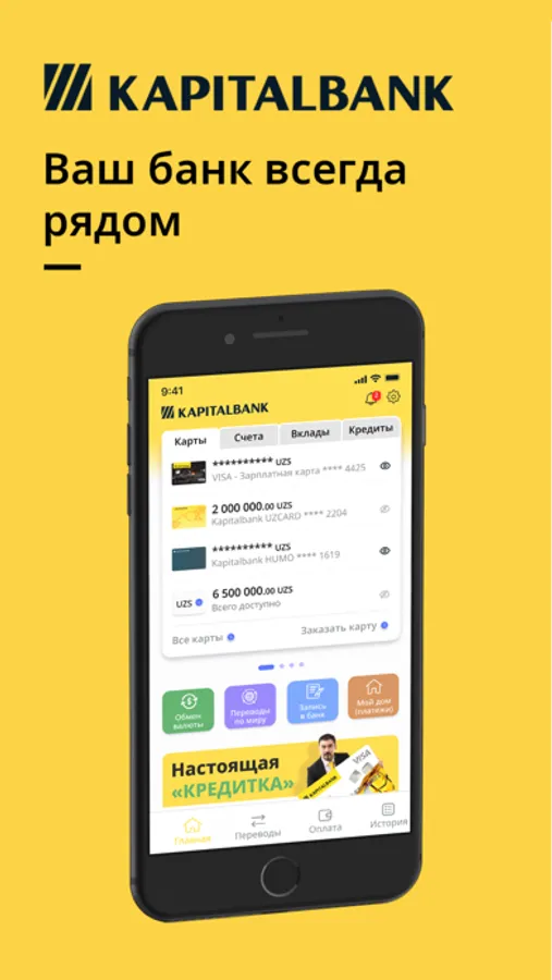 Приложение для клиентов «Капиталбанка» разработано так, чтобы управление банковскими продуктами и сервисами было максимально удобным, надежным и быстрым. Мобильный банк позволяет вам совершать переводы, обменивать валюту, управлять картами и вкладами