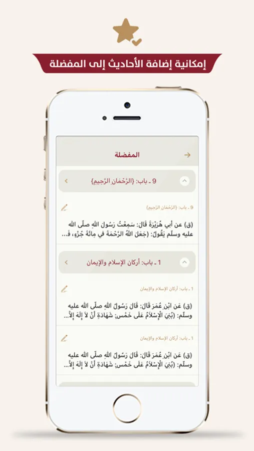 - إمكانية إضافة الأحاديث إلى المفضلة.