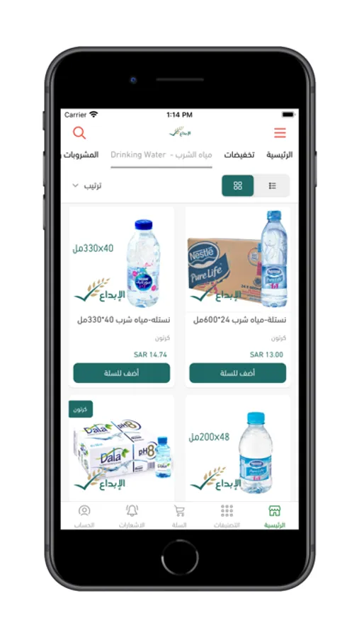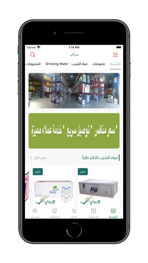 متجر الإبداع متخصص في جميع أنواع المياه والعصيرات والأغذية بالكرتون والحبة وتوفر عليك الجهد والوقت وعناء حمل الكراتين إلى منزلك