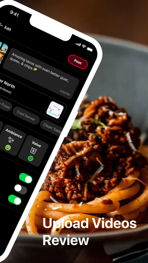 -Upload a photo or video along with your review so your followers can see what’s good with the food, cocktails + vibes.