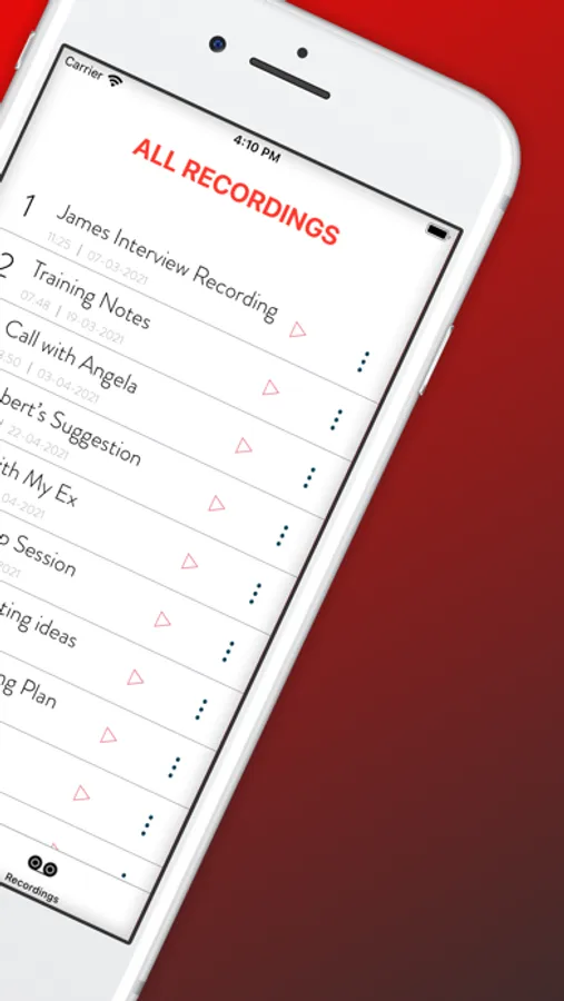 How to record phone calls on your phone? Open our app, press the "Record" button and carry on the conversation as usual. You may also see the recordings as soon as you hang up and edit, rename the record. You don’t have difficulty finding the necessary recording as you rename it once stored.