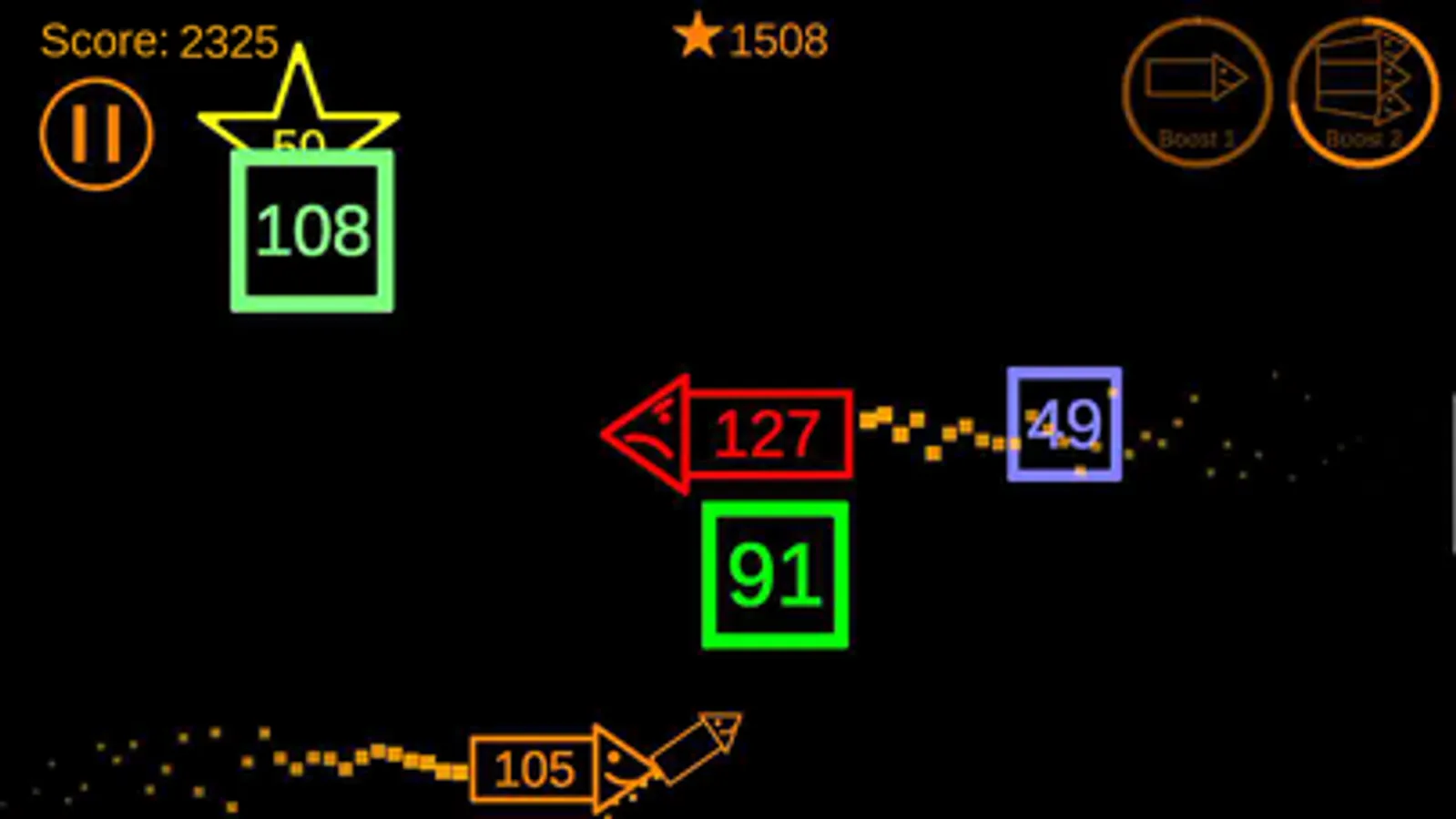 The player moves a rocket through the universe. The aim is to smash all the blocks where the number of points is less. If the player smashes a block, his number of points increases and he gets stars. The rocket can shoot bullets to damage the blocks. If a block is larger in number than the rocket and collides with the rocket, the rocket is destroyed and the game is over.
