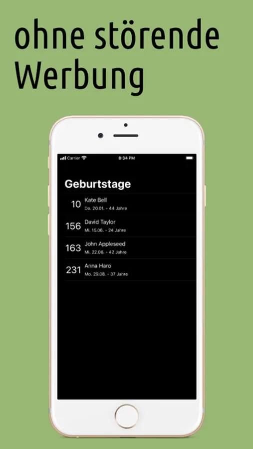 Die App benötigt Zugriff auf Ihr Adressbuch, um die Geburtstage anzuzeigen.